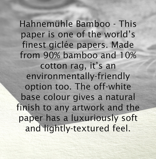 Limited Edition Fine Art Giclee Print on Hahnemühle Bamboo paper. Each size limited to 100 prints.